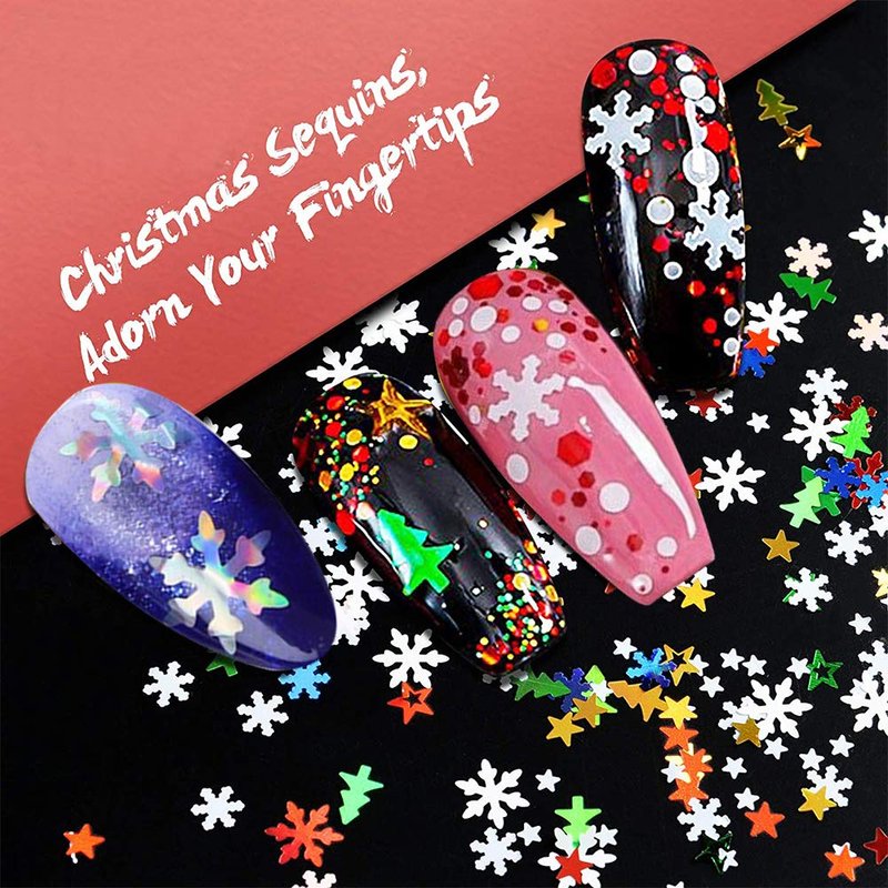 - Various Pattern Designs - The holographic Christmas nail sequins are in different patterns, such as snowflake nail flake & mixed shapes Christmas Patterns, you can choose the favorite one and combine to meet your nail art decoration needs.