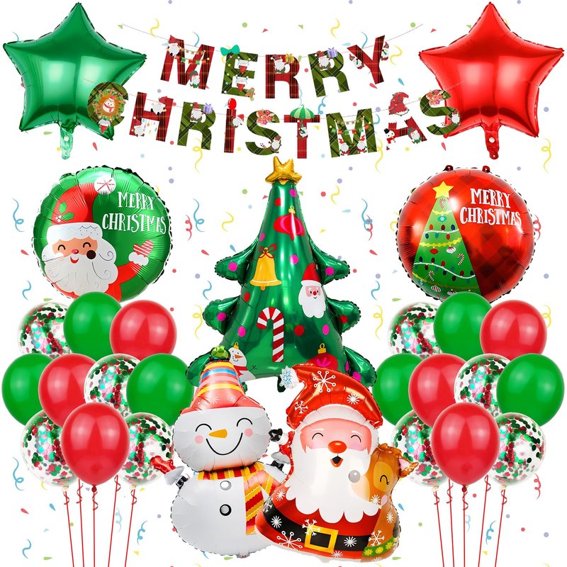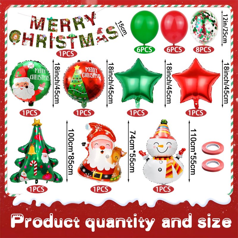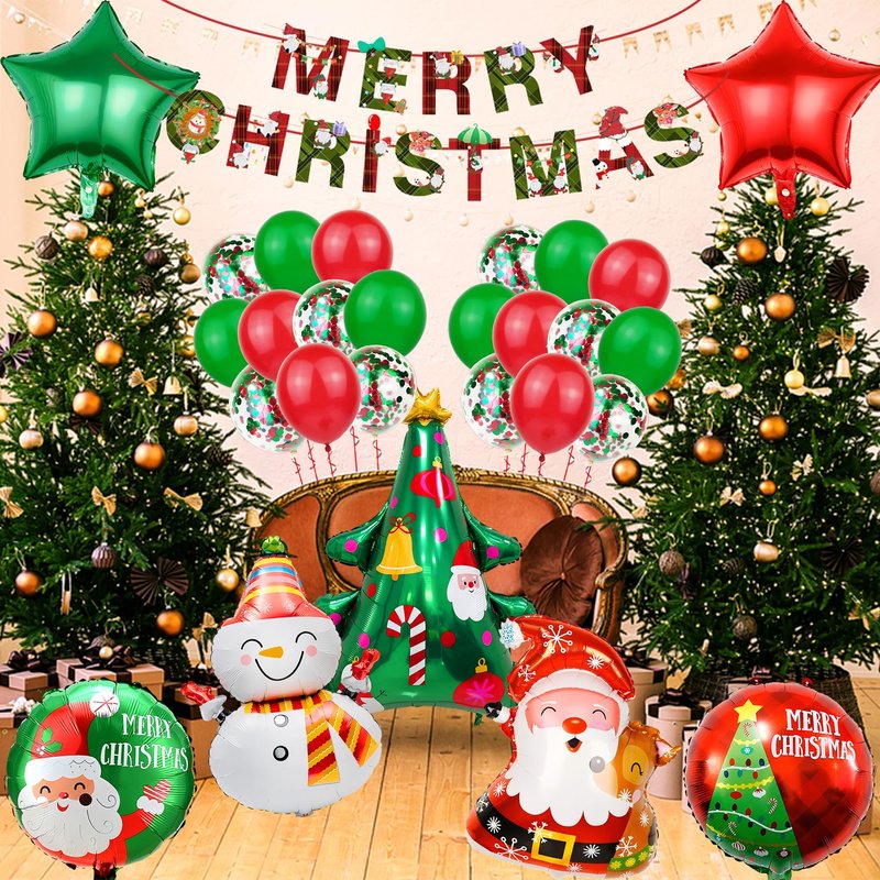 - 🎉【Christmas Party Decorations Set】This all-in-one set includes 20 different color balloons, 1 Happy Birthday Banner, 1 snowman foil balloon, 1 Santa foil balloon, 1 Christmas tree foil balloon, 2 round foil balloons, 2 five-pointed star foil balloons, 1 blue ribbon.