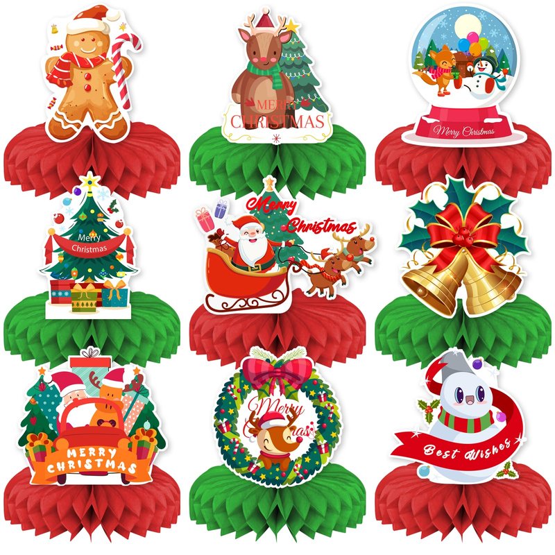 Christmas Party Decorations,KSKSPE Christmas Centerpieces for Tables Honeycomb Centerpieces 3D Christmas Theme Birthday Party Decor Supplies Boys Girls-9 PCS