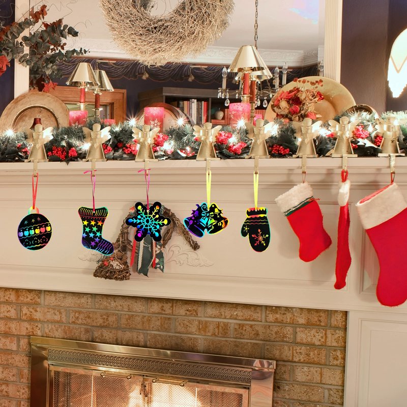 - Easy to Use: These Christmas ornaments are very simple to use, you just only need to use the wooden styluses to draw different patterns on the scratch paper, then get the rainbow color patterns, you can hang them to the ideal place by using the ribbons.