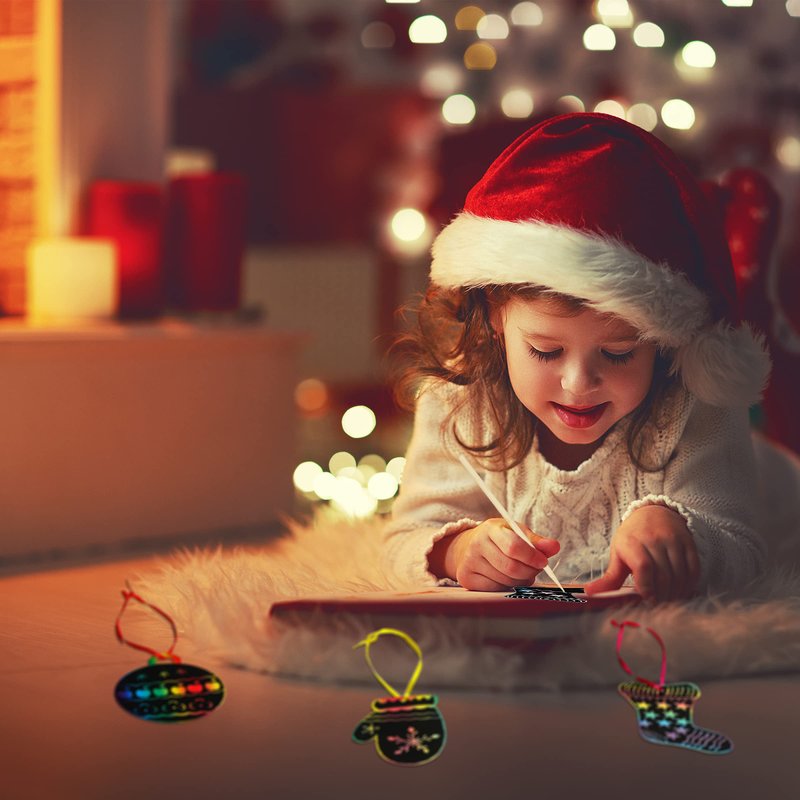 The Perfect Gift for Christmas: Our Christmas scratch paintings contain colorful Christmas elements, which are hung on Christmas trees and other places to make Christmas colorful.