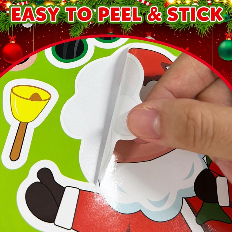 DIY Christmas Stickers: Including 24 sheets Funny Christmas party favor stickers with 6 different Christmas faces to decorate, a snowmen, a Santa Claus, a reindeer and a girl. Each Christmas craft stickers( 5.11” X 7.5”) are combined by rich colorful variety of Christmas elements, like bell, Santa hat, gloves, candles, candy, gift box, gingerbread, cane, bow etc, diverse and attractive Christmas stickers will be a hit among children at Christmas.Easy To Use: Christmas kids craft stickers are made of thick quality paper, you can feel it by touch, smooth and easy to peel off, also it stick well on any object like gift boxes, invitation cards, gift wrappers, goodie bag, scrap book, greeting cards, refrigerator, wall, window, etc, perfect addition to Christmas decorations.Kids Christmas Fun: These tons of Christmas santa and snowman face stickers will keep your little ones busy and entertained at Christmas, they absolutely love to decorate their own Christmas Santa or Snowman stickers all by their own, which exercise their hands-on ability and perception of colors, just let imagination and creativity run wild and enjoy the Christmas craft fun with them.Christmas Stickers Stocking Stuffers: These adorable Christmas party game stickers are awesome for anything Christmas themed like games stickers, Christmas cards craft, decorating wall or windows, kids preschool Christmas party favors, Christmas treat/ goodie bag filler sticker, stocking stuffers, class favors, toddler daycare Xmas gift, Suit to use at Christmas parties, family gatherings, and kindergarten games. Kids absolutely love sticker games.Great Party Favors: Our face stickers is very suitable for DIY to make your own face stickers with relatives and friends at a party or in a classroom, which can deepen their friendship. it is also a very good choice for other activities, such as road trip, car trip or on a plane to avoid restless.