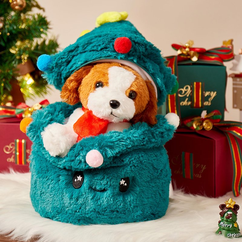- Great Quality Build: Crafted from great polyester cotton, this Christmas tree plush bag and cute dog stuffed animal toy boast durability, softness, and reinforced stitching for longevity. This This Christmas plushies decoration is perfect for storing small Christmas toys and ornaments