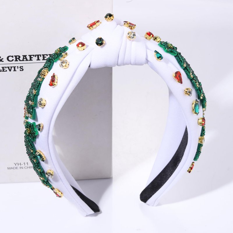 Christmas Tree Knotted Headband for Women Pearl Rhinestone Jewelry Christmas Tree Beaded Hairband Winter Holliday Wide Knot Headband Christmas Party Favors Gifts