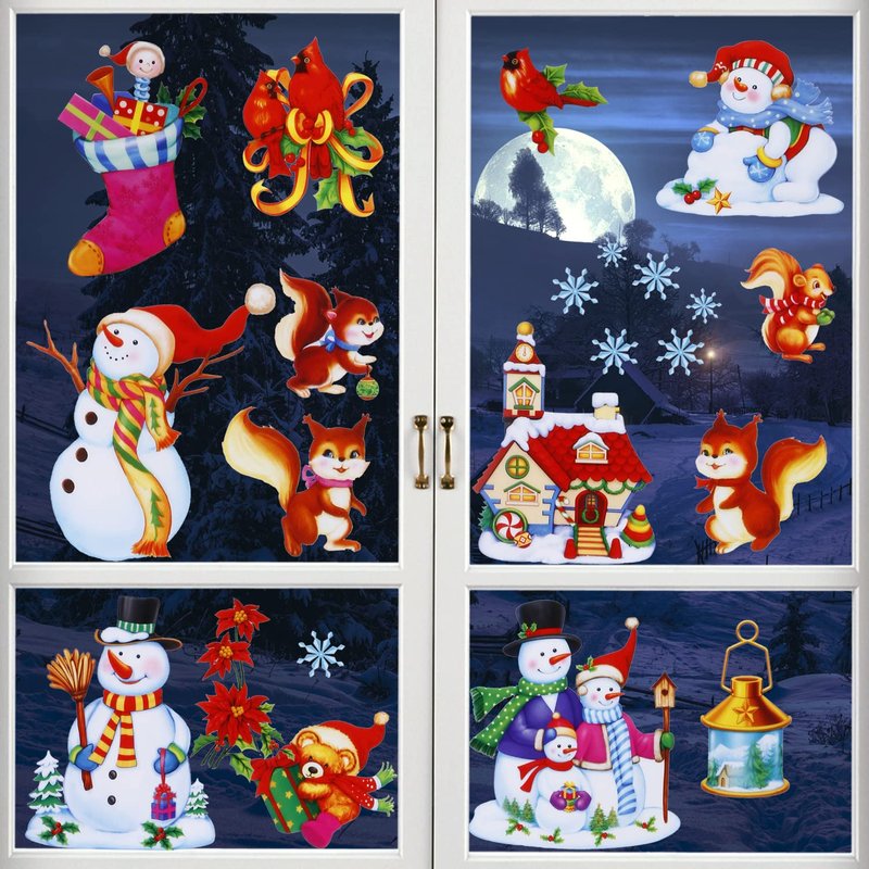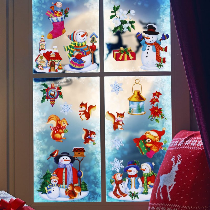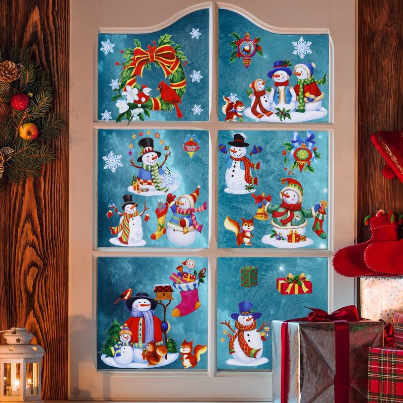 - 🎄Snowman & Snowflake Decoration: Sparkly glitter and the variety of patterns, they look amazing from inside and out. Christmas window clings create a ambience like a fairy tale world, bring more fun.