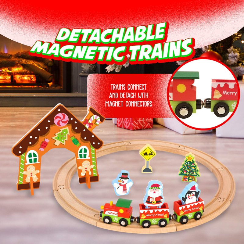 Christmas Wooden Train Set Toys for 2 Year Old boy and up (Christmas Train Set)