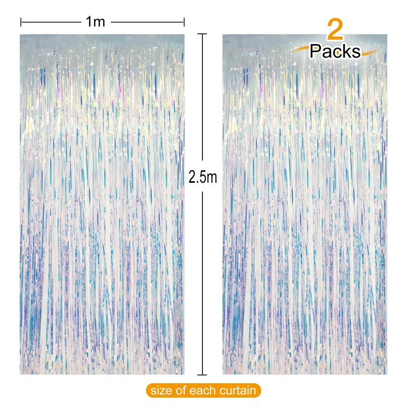 - Package: Set contains 2 packs of metallic rainbow tinsel curtains, each curtain size is about 1m x 2.5m(width x depth), can be freely cut according to needs