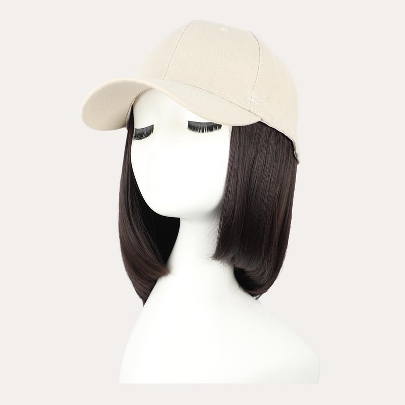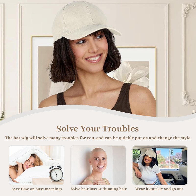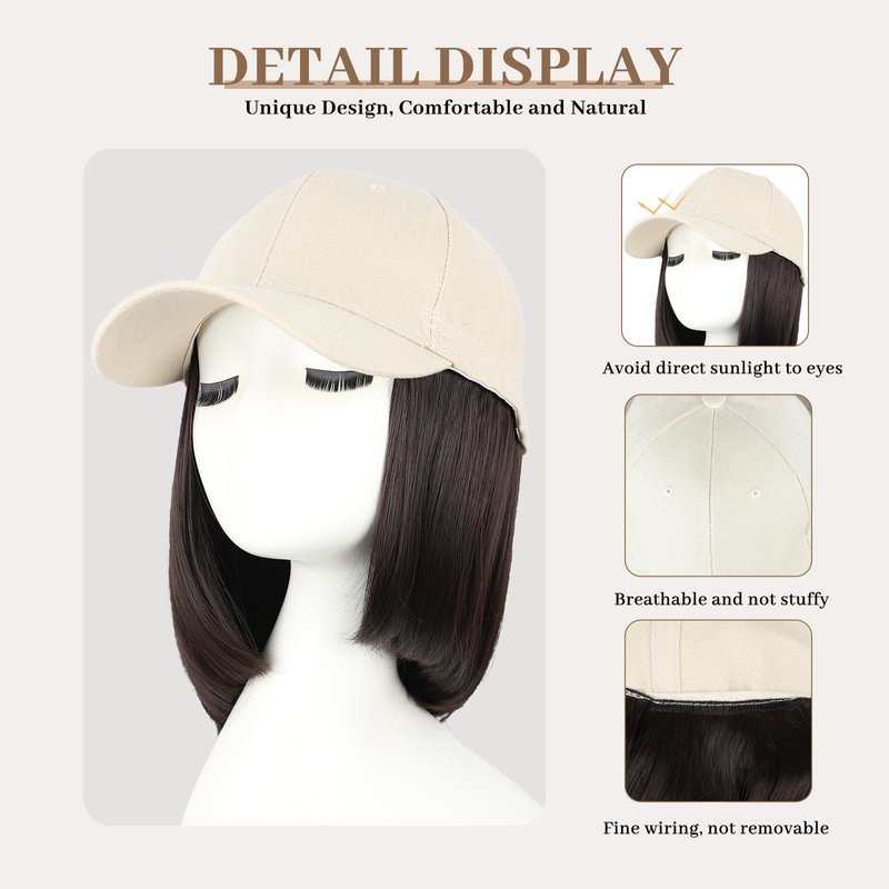 CHRSHN Hat Wigs for Women Baseball Cap With Hair Extensions Synthetic Short Straight Bob Hat with Hair Attached for Women Adjustable Hat Wig for Daily Use (6A)