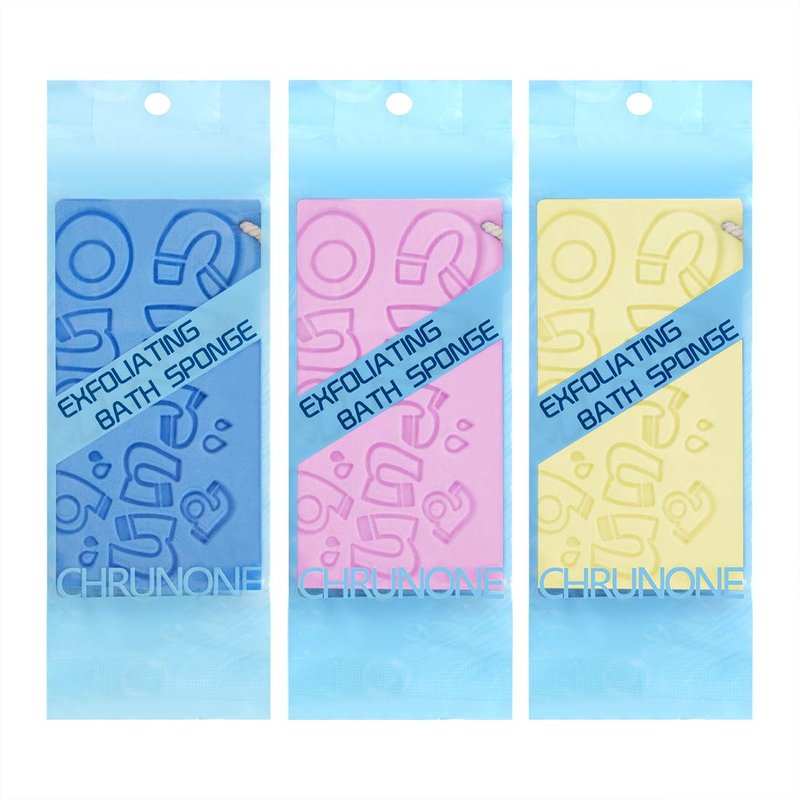 CHRUNONE 3 pcs Exfoliating Bath Sponge, Bath Sponge for Shower, Dead Skin Sponge Remover for Body