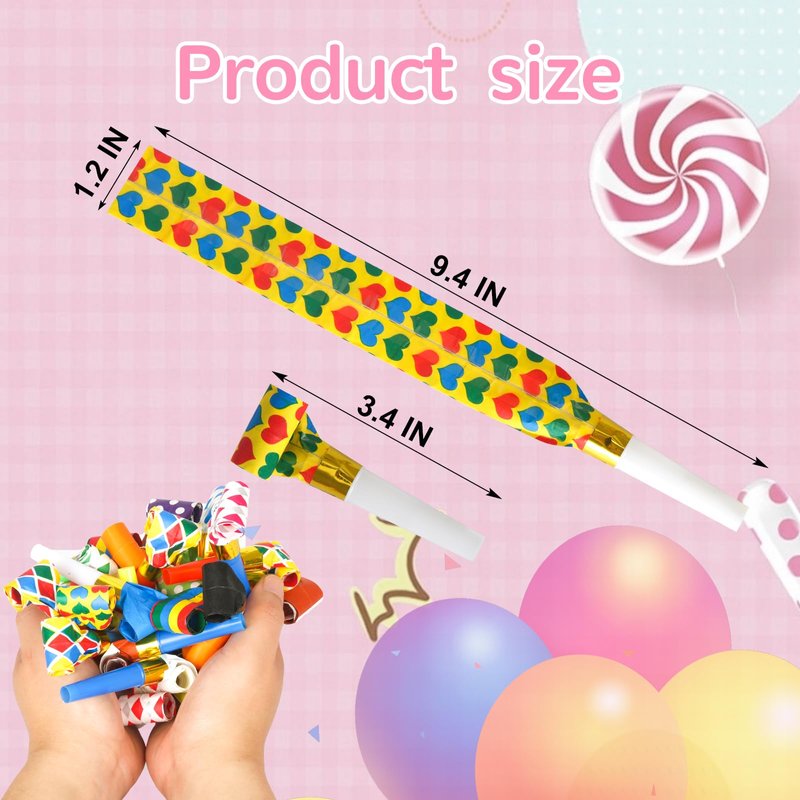 - Fun set - 50 birthday noise makers can meet the high demand of gatherings. Most importantly, the packaging includes various colors and patterns. The bright colors on plastic components make the party more vibrant and colorful