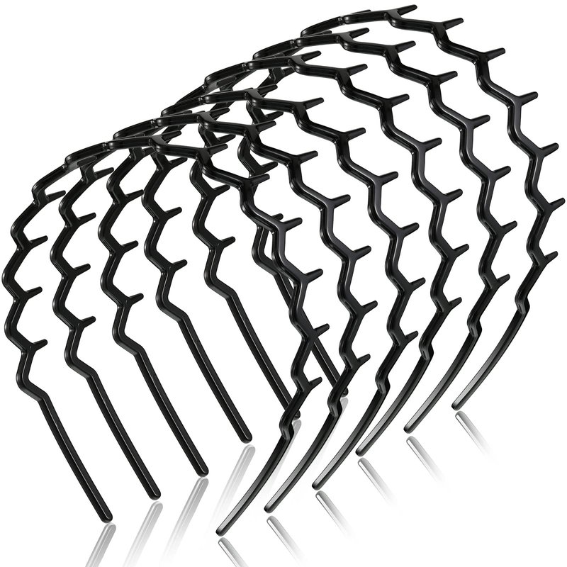 Chuangdi 6 Pieces Zigzag Headband Plastic Shark Tooth Hair Comb Hairband Zig Zag Headband Plastic Wavy teeth Hair Hoop Accessory for Women Lady Girl(Black,Fresh Style)
