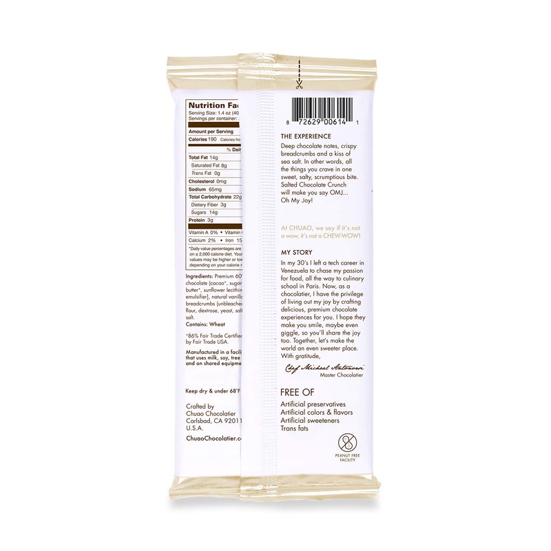 - HIT EVERY TASTE BUD :Salted Chocolate Crunch is a dark chocolate featuring a touch of sea salt