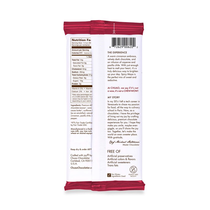 - HIT EVERY TASTE BUD : The Spicy Maya is a dark chocolate featuring hints of cinnamon, chile, and cayenne that warms you up with each bite.