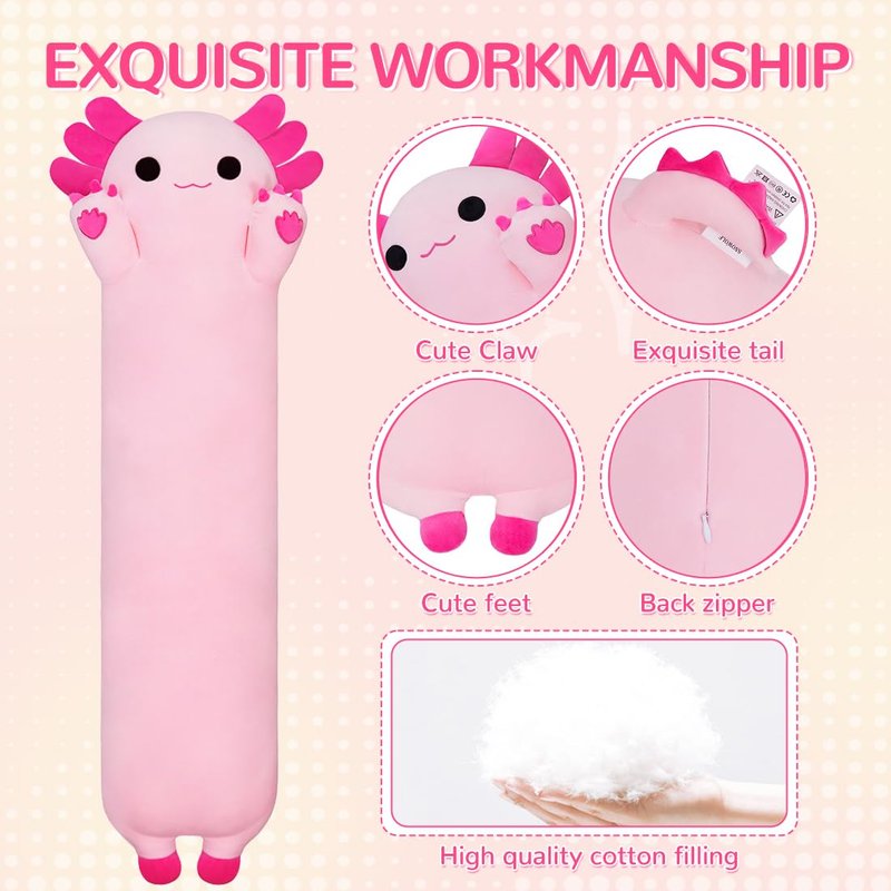 Chubbyjoy Axolotl Plush Toy, Cute Axolotl Stuffed Animal Soft Long Plushie Body Pillow for Girls and Boys Adults Gifts, 20", Pink