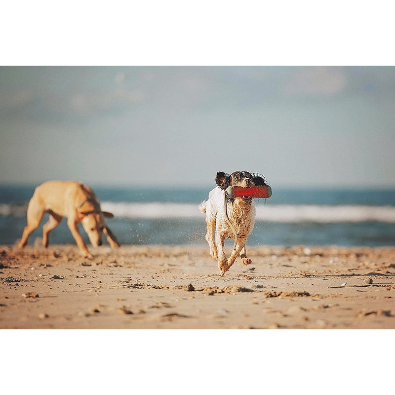 - Durable Design: The Chuckit water dog toy is made of nylon, rubber, and EVA foam that's soft on dog's gums and teeth. The fetch toy also withstands aggressive chewing. Easy to clean, just rinse off