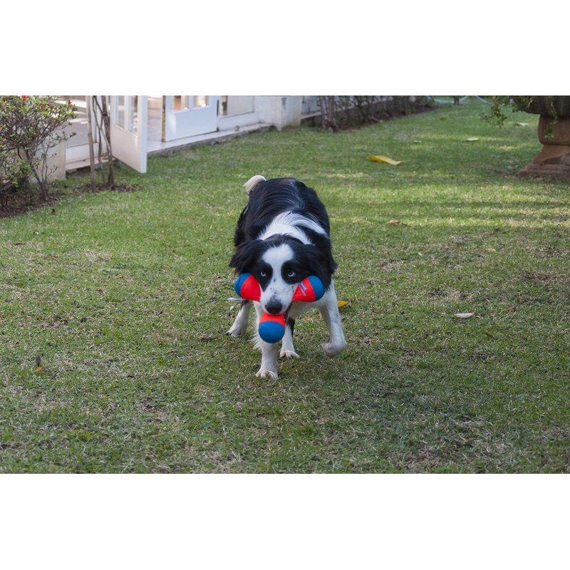 - TUMBLING DESIGN: Featuring bouncy rubber end-caps, this dog bumper toy tumbles end-over-end when thrown for exciting games of fetch