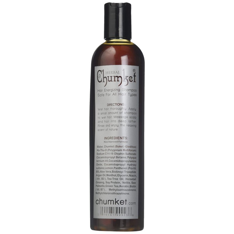 Herbal Chumket Hair Re-Growth Shampoo with organic Botanical Extract helps promote strong, healthy, growing hair. Its rich, luxurious formula gently cleanses conditions and detangles hair while it thickens and returns hair to its natural healthy condition. Herbal Chumket Hair Re-Growth Shampoo restores moisture to dry, brittle and damaged hair. Safe to use on all types of hair including color treated, bleached and relaxed.