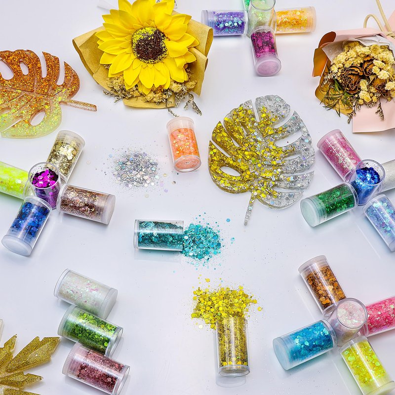 - ✅Wide Application Chunky Glitter: With combination of chunky glitters and fine glitters, different sizes of glitter sequins mixture not only gives you the sparkle effect on resin crafts and festival decoration, slime fillers, tumbler glitter and other DIY crafts, but also suitable for acrylic nail glitter, festival makeup for face, eyes, nail, hair, lips, body glitter and more.