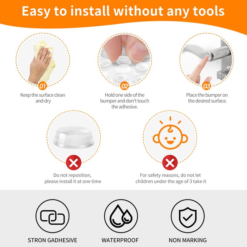- Clear Design: These transparent cabinet bumpers blend seamlessly with any cabinet or drawer surface.