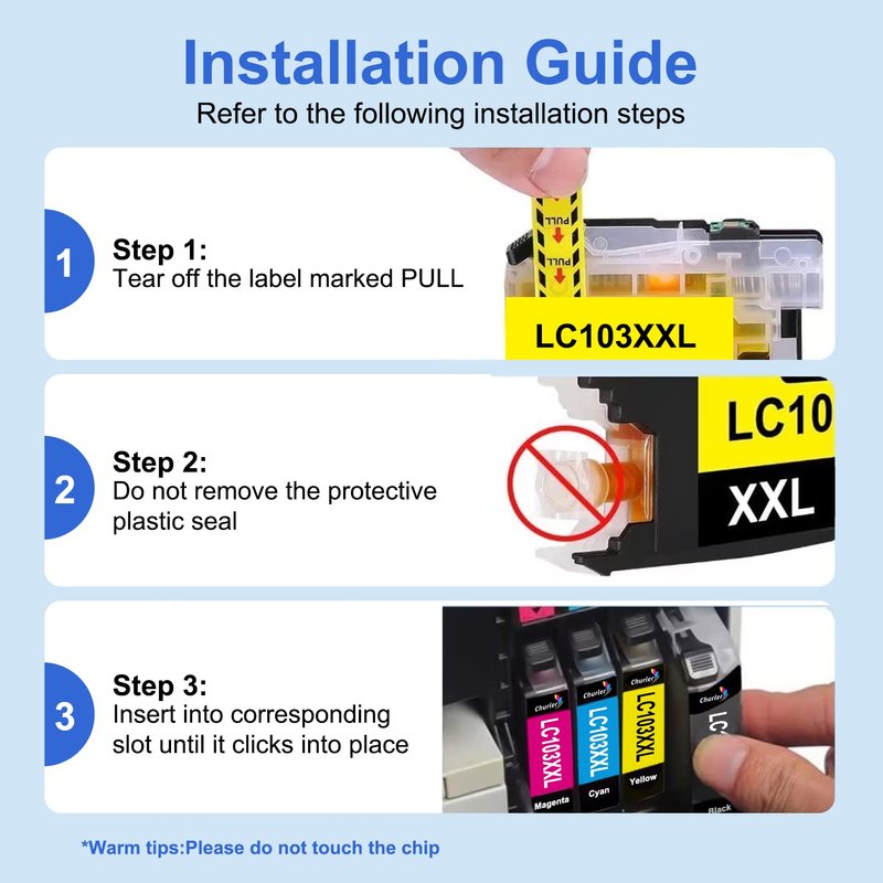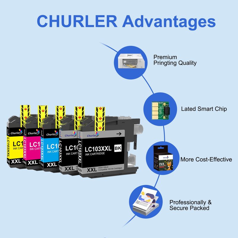 - 🏀for Brother LC103 XXL Ink Cartridges Promise: Compatible For brother printer ink lc103 were tested strictly with industry quality control processes.If you have any question, please contact us directly, we will provide high quality after-sales service,to ensure the customer's shopping experience Warranty: We Offer A 12-month Warranty On The Brother Ink Cartridges LC103