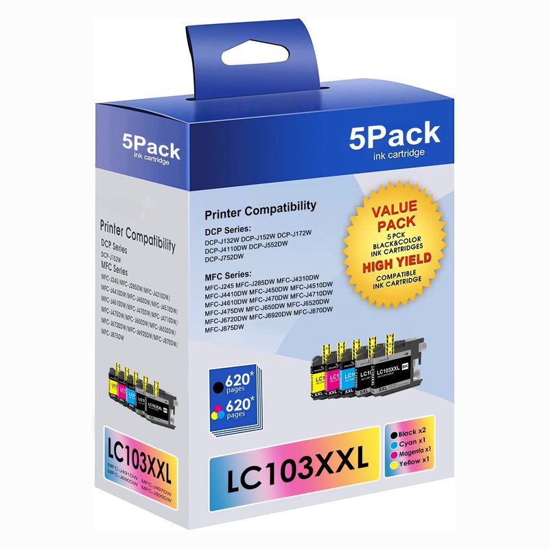 - 🏀LC103XL High Page Yield:for brother ink 103 LC103XL Black LC103BK 620 Pages, LC103XL Cyan LC103C 620 Pages, LC103XL Magenta LC103M 620 Pages, LC103XL Yellow LC103Y 620 Pages (Letter/A4, at 5% coverage)