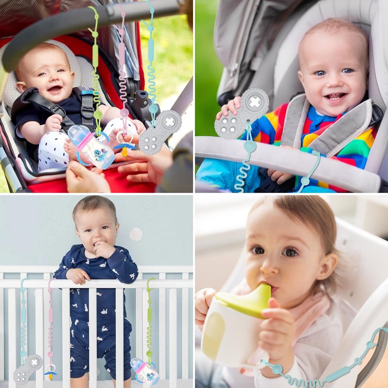 - [Multifunctional Usages]:These pacifier chains can be used to hold the pacifier / bedbell / toy / bottle / teething toy, The pacifier strap can be locked to the stroller / car seat / shaker / hand at any time, this is a universal pacifier clip, suitable for most pacifiers !