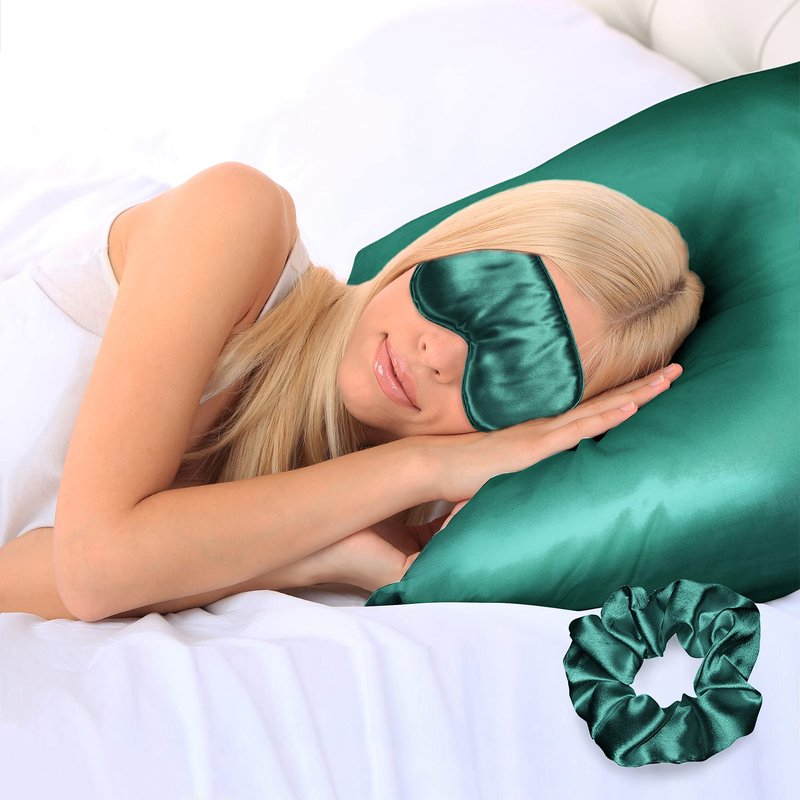 Get a good night's sleep with Ciana's satin sleep set! In addition to the Queen satin pillowcase, this set comes complete with a matching satin eye mask and a volume scrunchie! Satin doesn't absorb moisture, unlike cotton, so your skin stays hydrated while you sleep for a more youthful, fresh complexion.