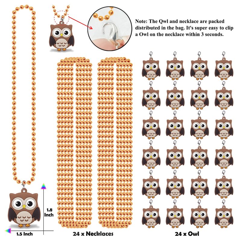 CiciBear 24 Pack Owl Necklace Party Favors with Mardi Gras Beads for Forest Friends Woodland Animals, Party Favors, Home Decorations, Birthday Celebrations