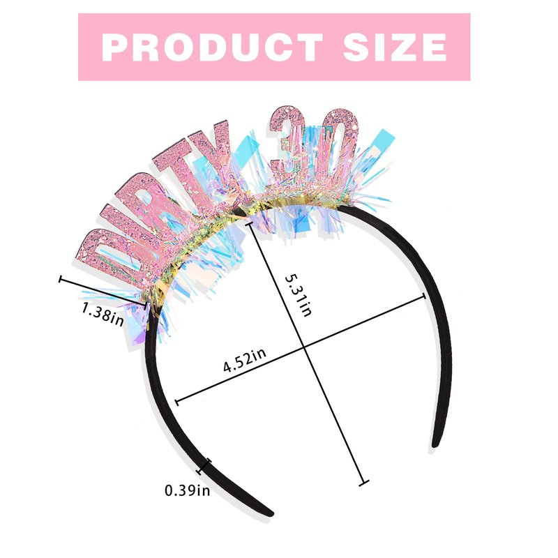 - Size: One size fit all. The dirty 30 birthday headband is adjustable, so don’t worry about the size. The 30th birthday crown is suitable for 30th birthday celebrations! You can also provide intimate gifts and unforgettable memories for your beloved family or friends.
