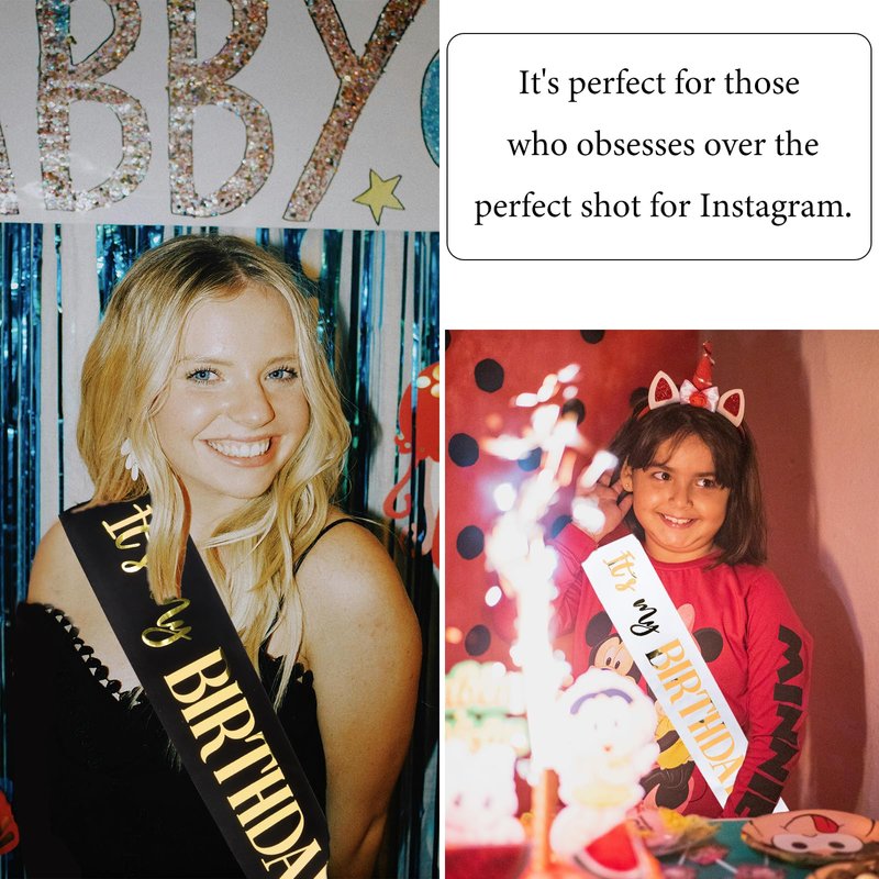 - The Perfect Birthday Decoration: "It's my Birthday" sash - 1*black + 1*white .