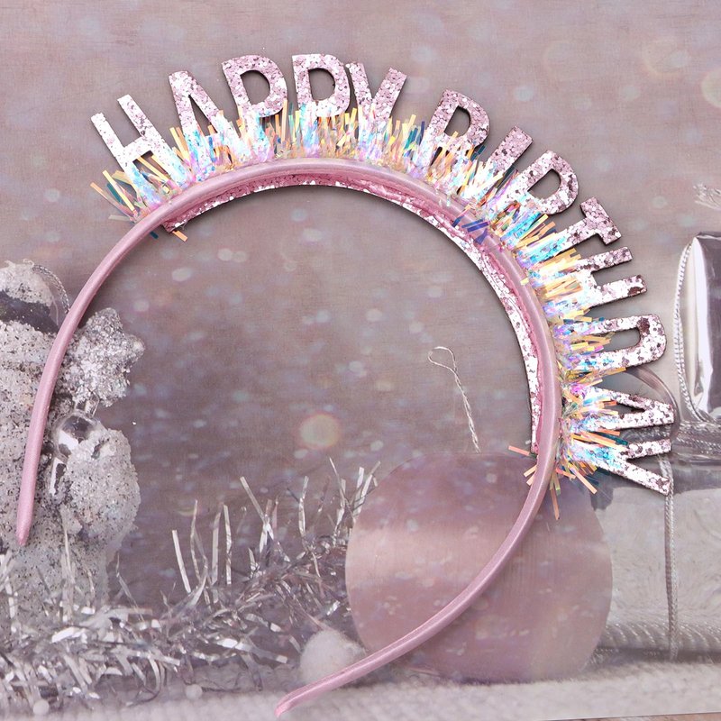 - Material: High quality plastic, laser sequins, pink glitter letters. Shining, durable and non-fading. Wear this shiny headband to add a touch of magic to your birthday, you will get more compliments and blessings on your special day!