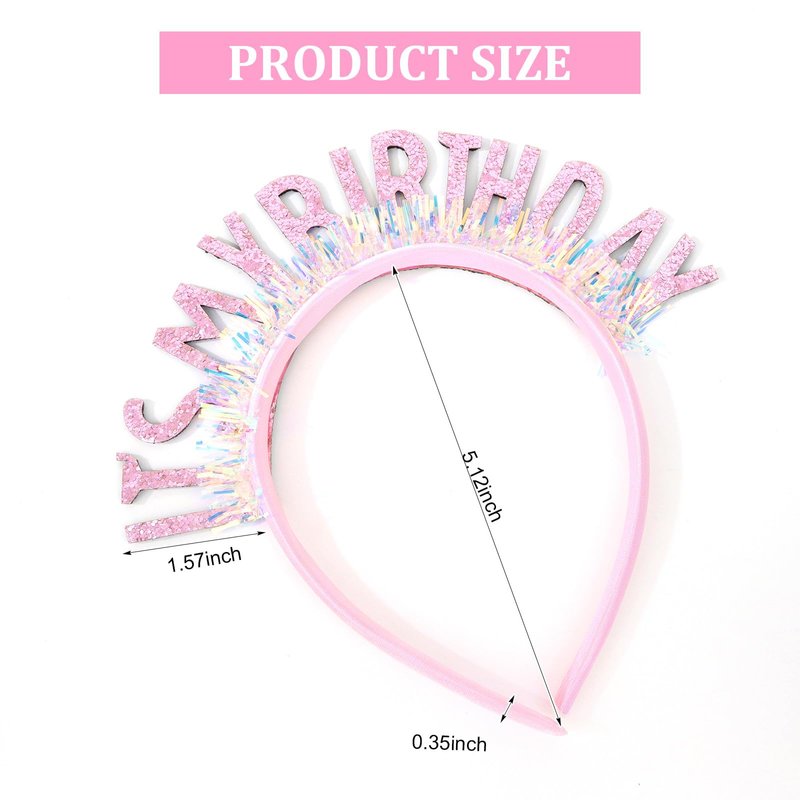 - Material: High quality plastic, laser sequins, pink glitter letters. Shining, durable and non-fading. Wear this shiny headband to add a touch of magic to your birthday, you will get more compliments and blessings on your special day!