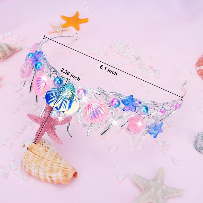 - 🧜🏼♀️Comfortable to Wear - Length 5.5inches (14cm), Height 1.8inches (4.57cm); Weight: 1.66oz (47g). Mermaid crowns are designed to fit most children and adults. It also suits different hairstyles and clothes. Our cute shiny mermaid shell tiaras are lightweight and don't feel heavy even when worn for a long time.