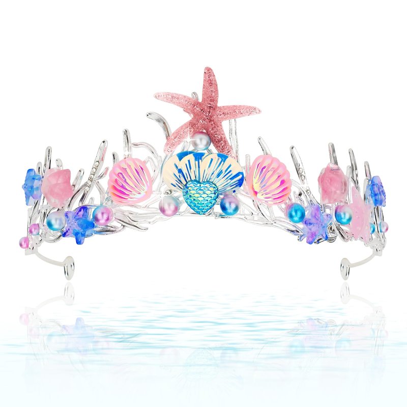 CIEHER Mermaid Crown for Women Girls Mermaid Headband Starfish Tiara Seashell Crown Mermaid Party Decorations Mermaid Birthday Decorations, Mermaid Accessories Costumes for Women