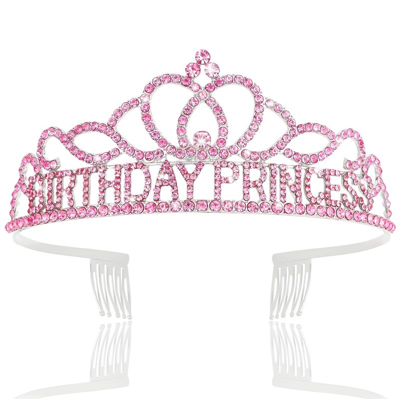 CIEHER Pink Birthday Princess Crown for Girls Birthday Crown Birthday Decorations Princess Birthday Gifts Birthday Tiara Princess Birthday Party Favors