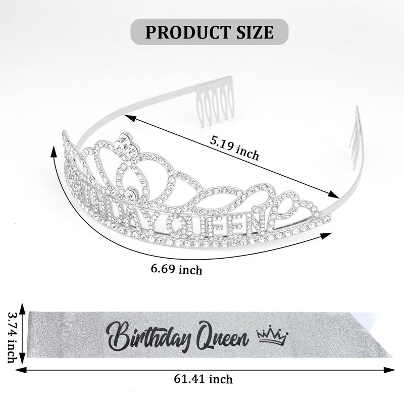 - Perfect birthday decorations set: silver birthday queen sash + rhinestone birthday tiara gifts set, can be applied to various themed birthday parties, such as queen themed parties. You are the brightest star at the birthday party.