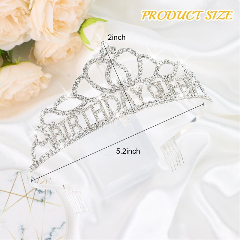 CIEHER Silver Birthday Queen Tiarras Birthday Decorations Birthday Gifts for Women Girls