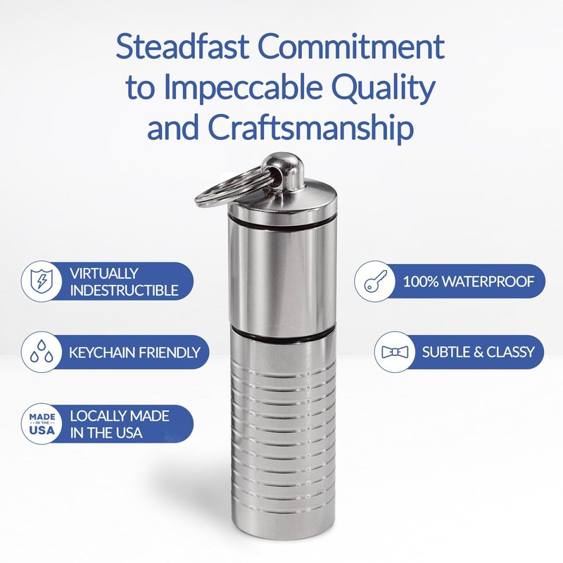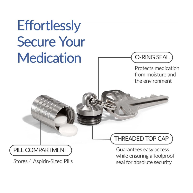 - Made of Superior Solid Materials - You deserve a pill container keychain that’s as tough and resilient as you are. Our mini pill holders are crafted with stainless steel. Engineered to outlast repeated use and the harshest conditions, they won’t easily break.