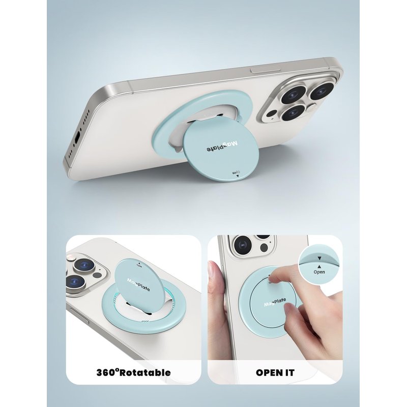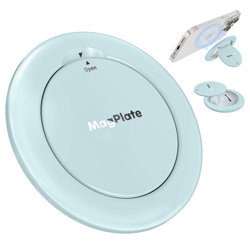 Ciencimy MagPlate [Compatible with MagSafe] Phone Grip Stand Holder, Finger Grip Kickstand Designed for iPhone 16 15 14 13 Plus Pro Max and All Phone (Sky Blue)