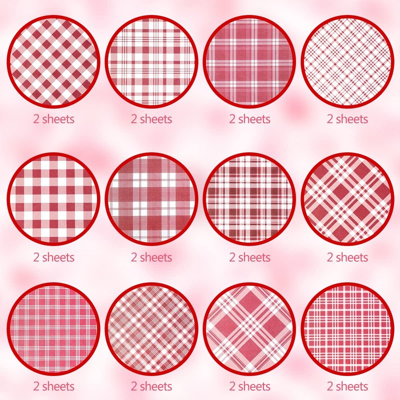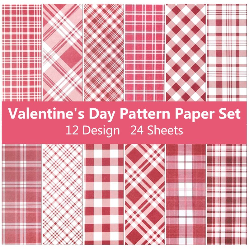 - Valentine Pattern Paper Pack: You will get 24 sheets Valentine buffalo plaid patterned paper in 12 different designs, each design has 2 sheets, fine buffalo plaid scrapbook specialty paper enough to satisfy your need to make Valentine's Day art craft gifts