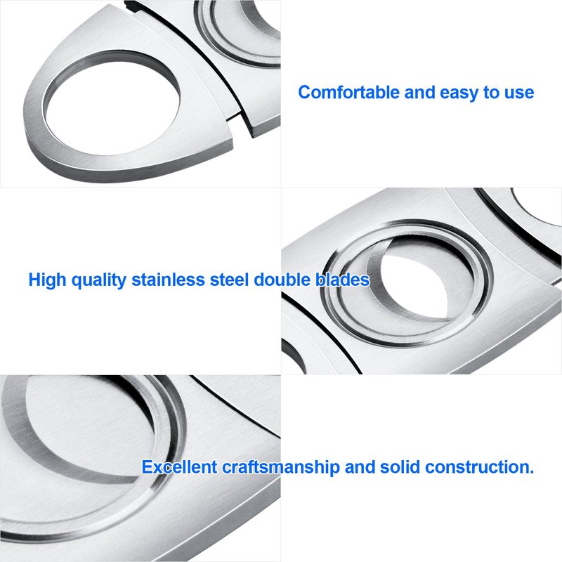 The cigar cutter made of high-quality stainless steel more durable and durable, sharp steel double blades guillotine diameter 22mm, cut caps easily and smoothly up to 60 ring gauge.