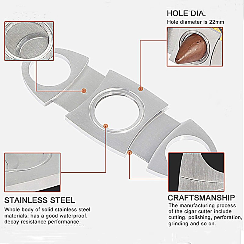 - Classic Double Blades : Inverted stainl stainless steel blade, cuts small and large ring gauge cigars, a clean cut.