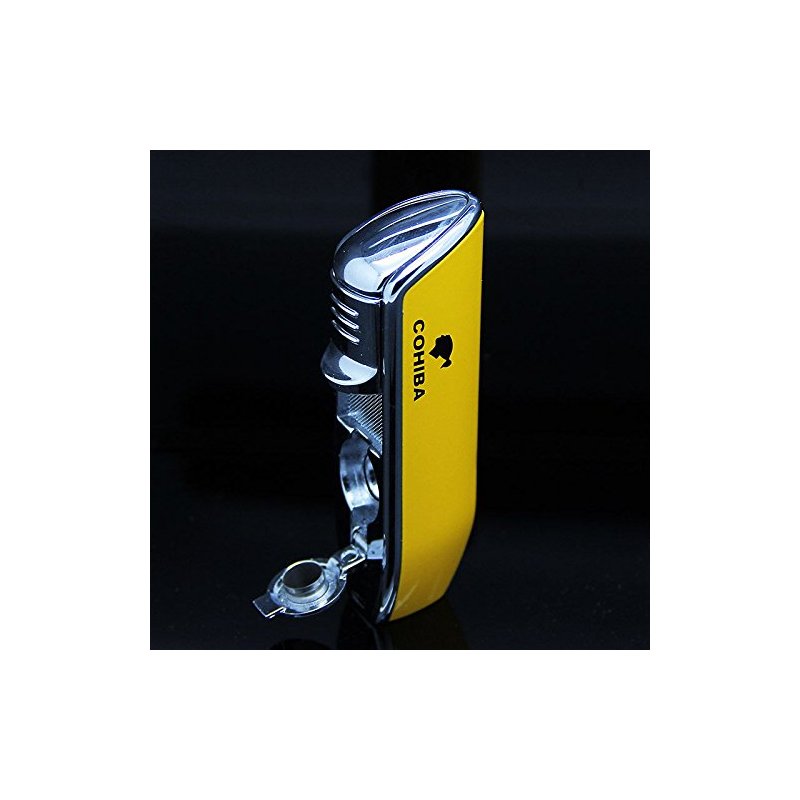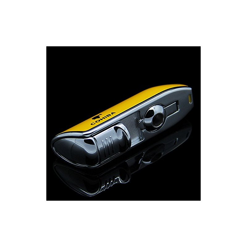CIGAR IN STYLE Cigar Lighter, Yellow Triple 3 Jet Flame Refillable Butane Torch Lighter with Punch