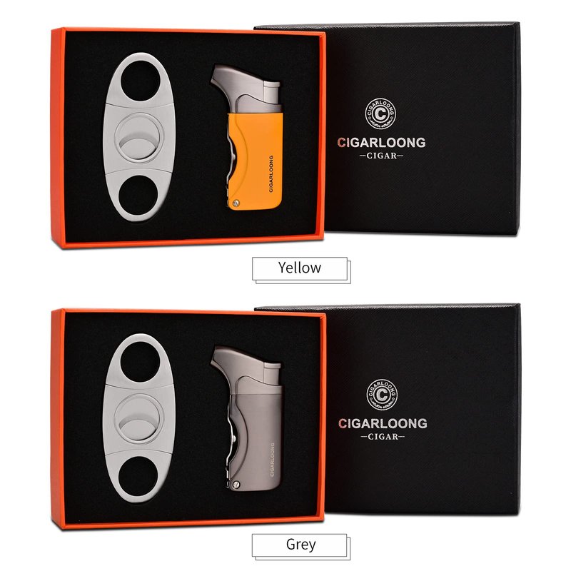 CIGARLOONG Cigar Cutter and Lighter Set, Sharp Blade Cutter Refillable Butane Lighter with Cigar Punch(Grey)