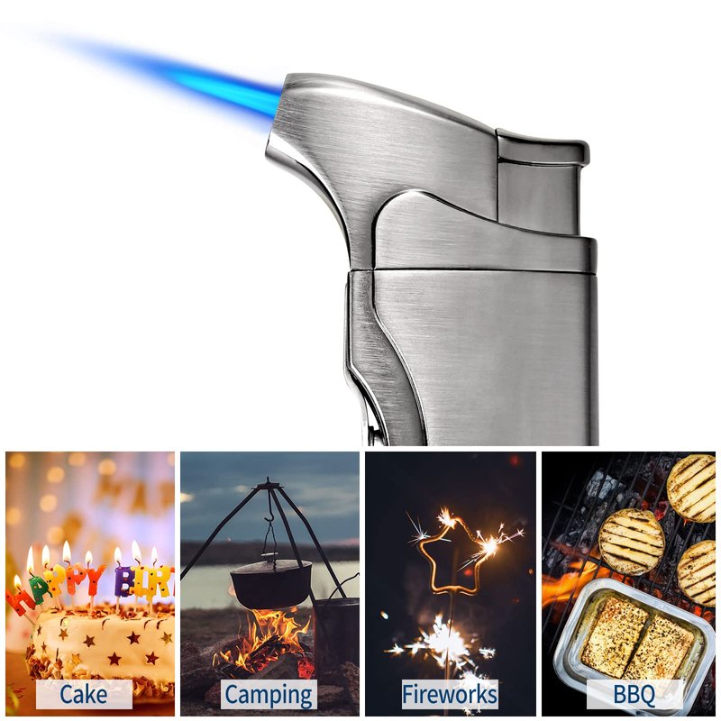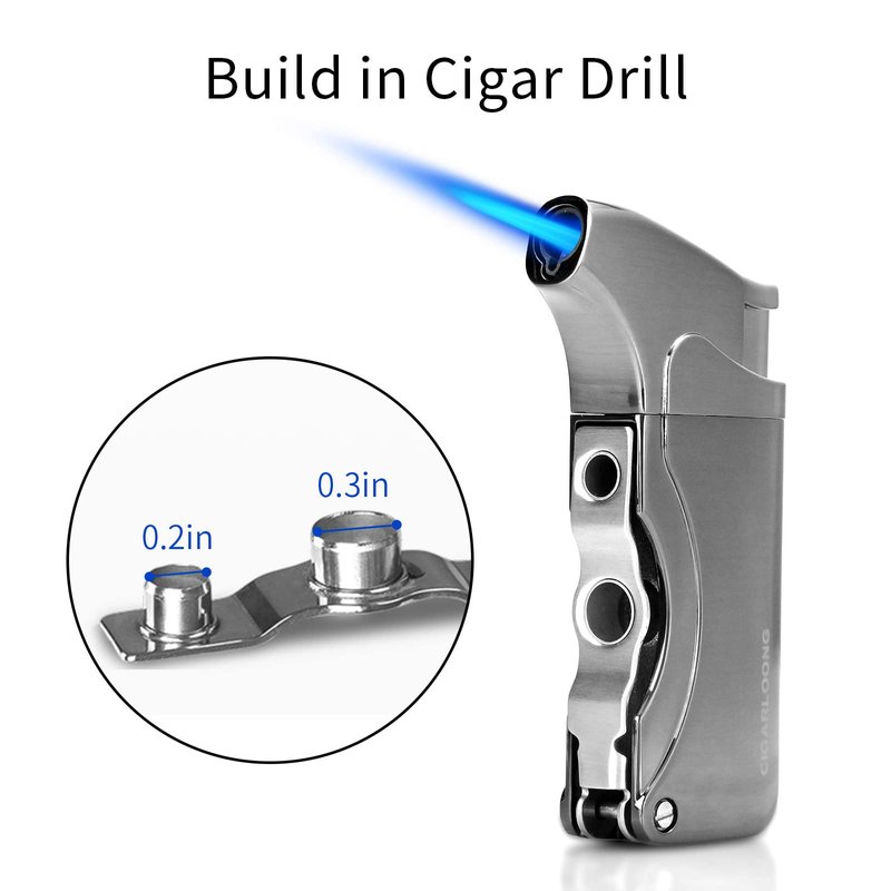 - WINDPROOF LIGHTER: Fashionable Metal Body, Keep Firepower Output Evenly, with Hidden Cigar Drill. Can Be Used on Smoking Cigars, Cigarettes, Candle, kitchen, Hiking, Etc.