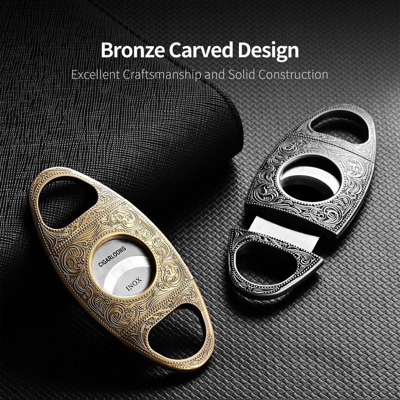 CIGARLOONG Cigar Cutter Stainless Steel Bronze Engraved Double Cut Blade (Color:Gold1)