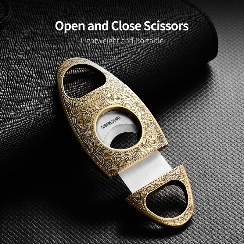 - CARVED PULL RING:Put your Thumb and Forefinger into Two Rings, Then Pull Hard,Cigar and Scissors at 90 Degree Angle,Cuts cigars Clean and with Precision.