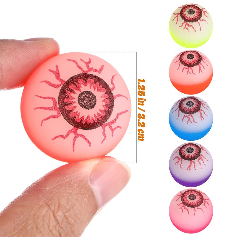 Ciieeo 10Pcs Halloween Eyeballs Glow in The Dark Bouncy Eyeballs Halloween Bouncy Balls for Party Supplies (Random Color, 32mm)