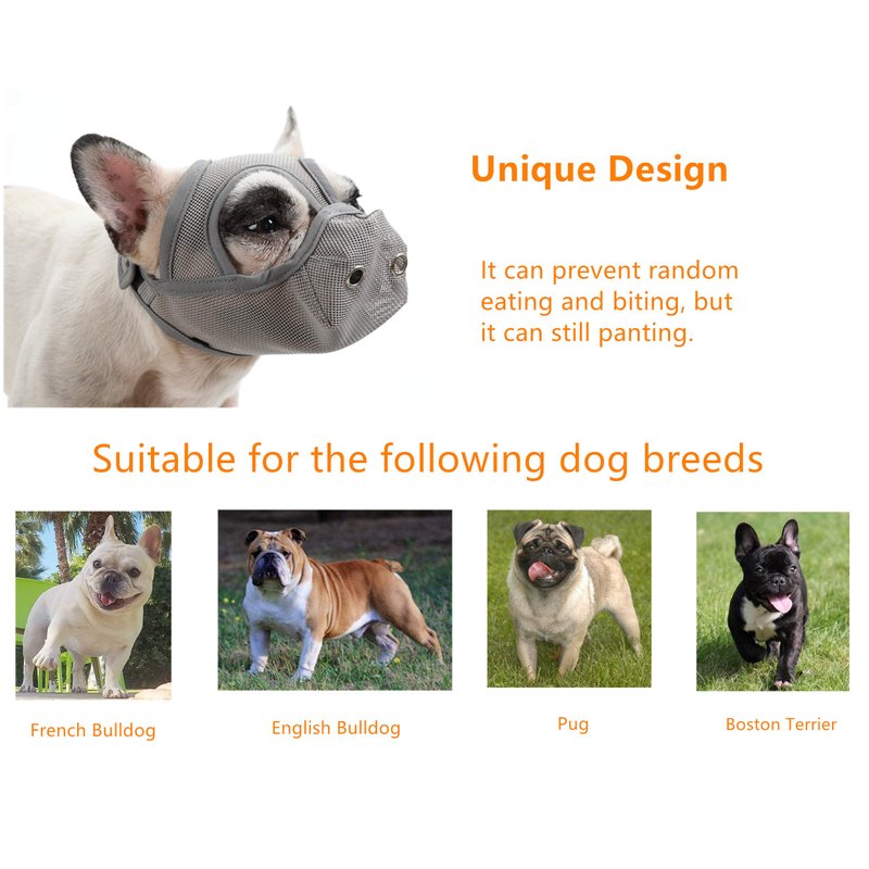 Cilkus Short Snout Dog Muzzles - Bulldog Muzzle Adjustable Breathable Mesh Dog Muzzle Can Stick Out Tongue and Drink Water Anti-Biting and Training Dog (M (16.5" -17.3"), Grey)