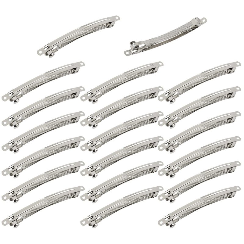 Cinaci 20 Pack 2.4 Inch / 3 Inch/ 4 Inch Blank Silver Metal DIY Craft French Barrettes Snap Hair Clips Pins for Women Girls Hair Accessories (4 Inch)